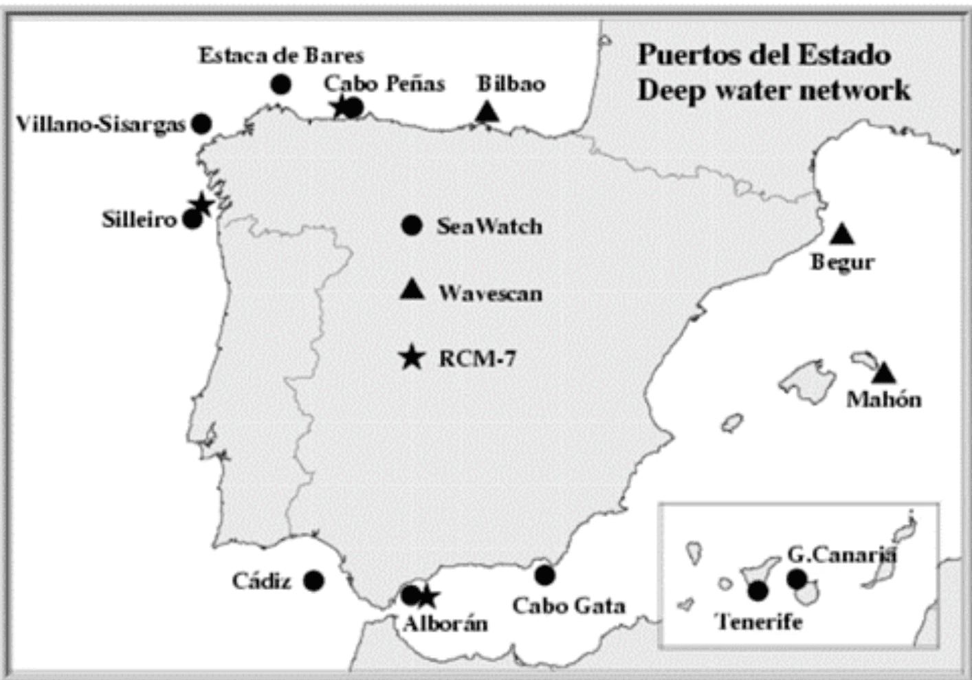 A map of the oceanographic monitoring and research stations along the Spanish Coast